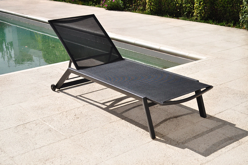 Reposera de aluminio con rueditas 100% exterior. Tiene 4 posiciones.